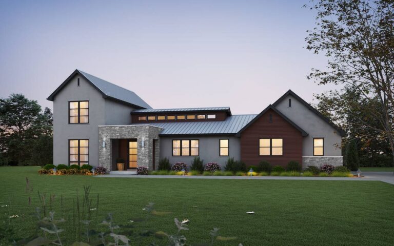 2-Bedroom Barndominium-Style House with Covered Patio and 3-Car Garage (Floor Plans)