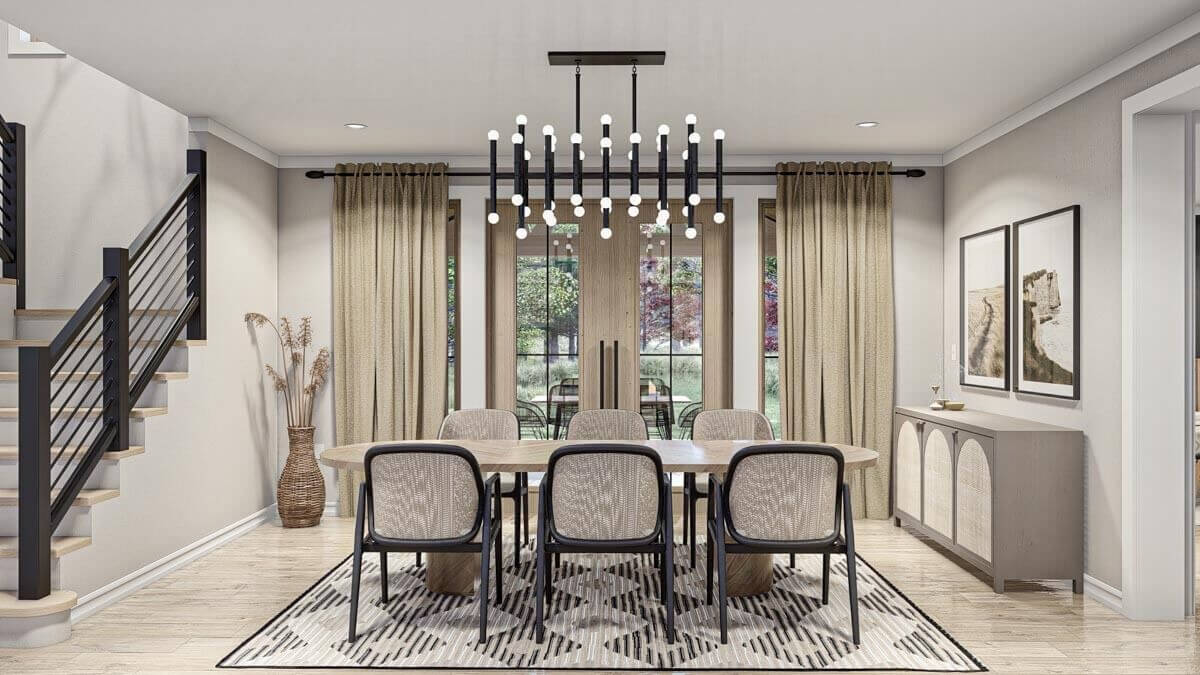 The great room is bathed in natural light, pouring through large windows, creating a welcoming ambiance. The open concept flawlessly connects the kitchen and dining areas, fostering seamless interaction and a sense of togetherness.