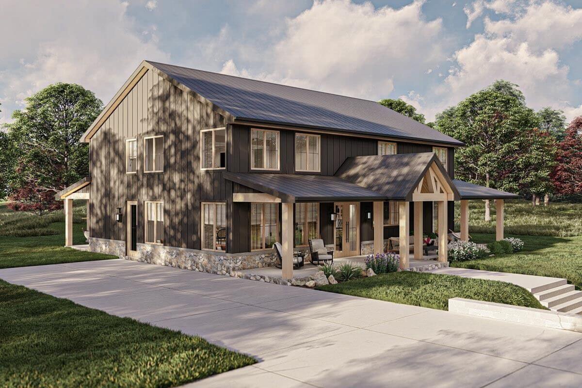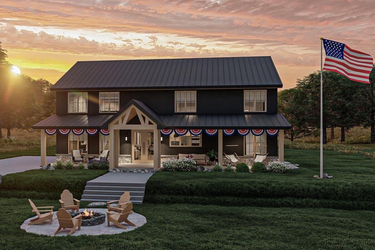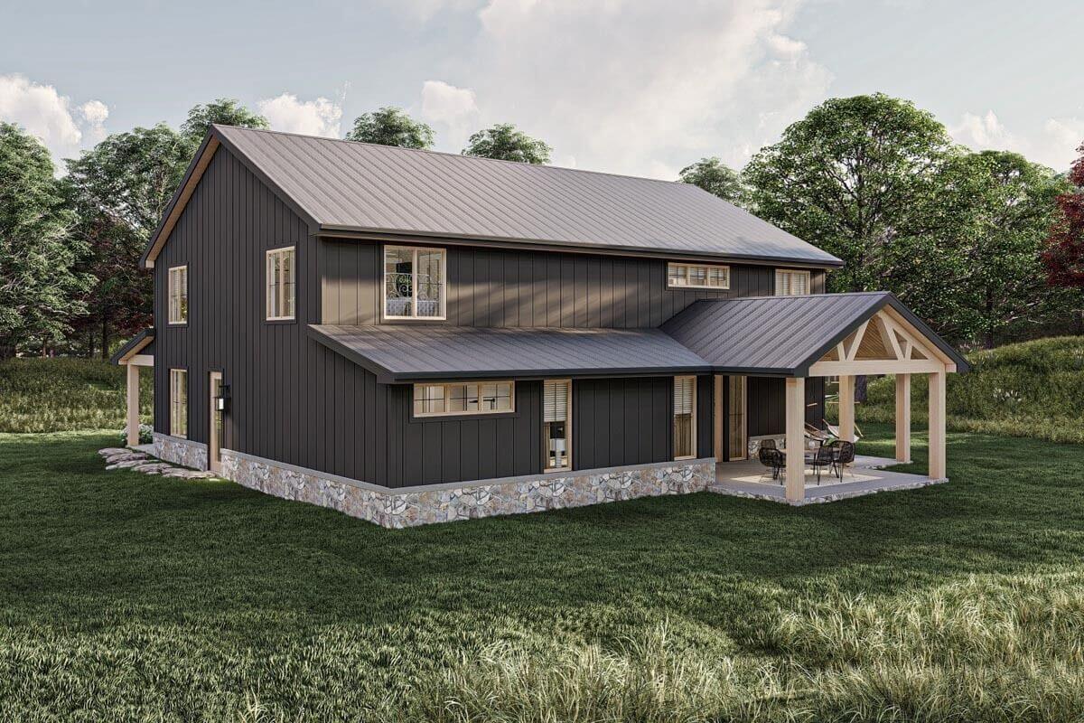 With its thoughtful design and ample amenities, this barndominium-style house plan promises a harmonious blend of functionality and comfort, creating the perfect place to call home.