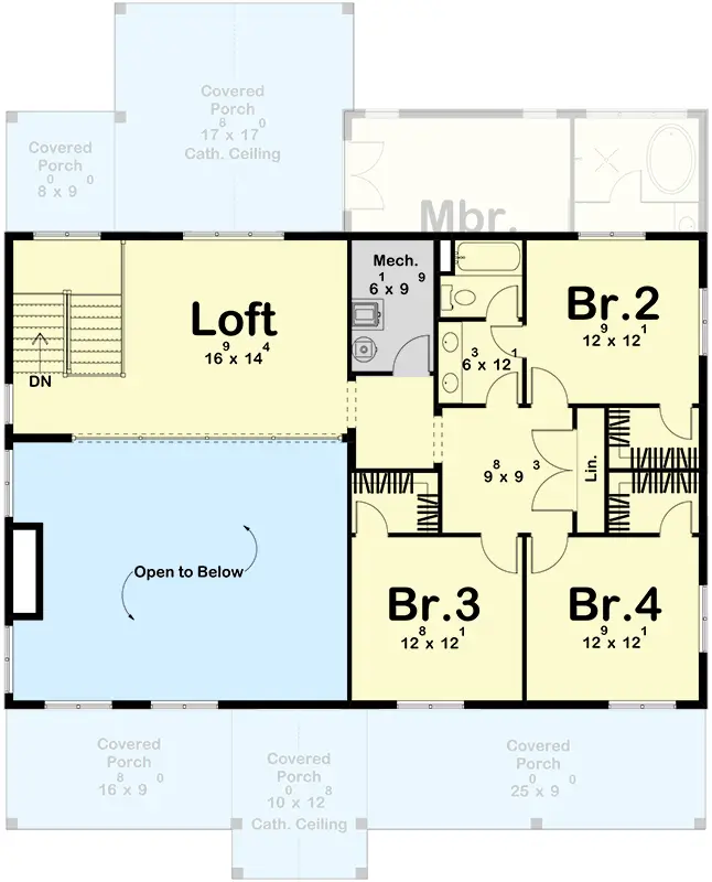 Upstairs, a loft area overlooks the great room, offering versatility and potential. It can serve as a cozy reading nook, a playful play area, or an additional entertainment zone, catering to various needs and preferences.