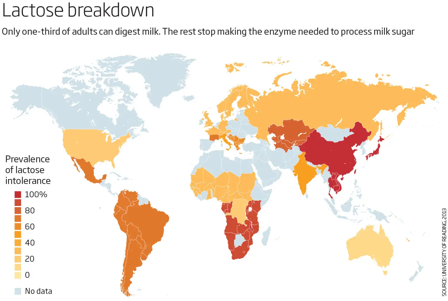 Dairy intolerance is highly commonplace in Asia and the Pacific.